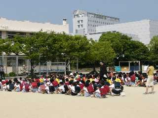 運動場に全員集合です。