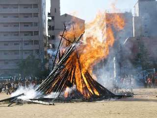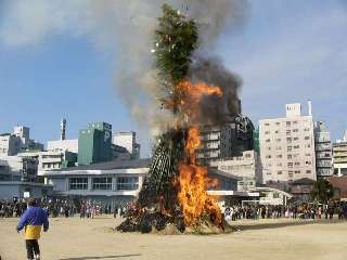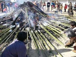 とんどの餅を食べて,一年間元気です。